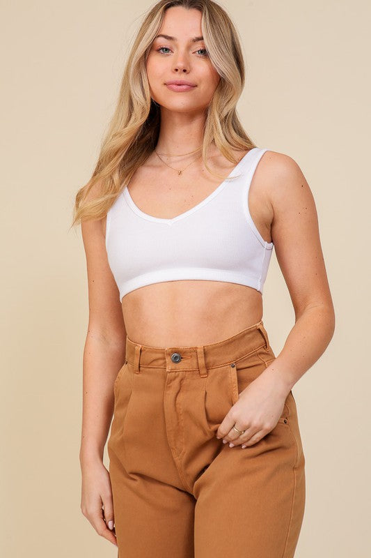 Our Hannah bralettes are an essential! It’s ribbed stretchy material make it the perfect mix of comfy and cool. It features a sleeveless heavy ribbed material with a snap on closure.