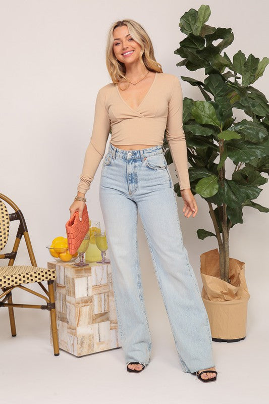Long sleeve surplice heavy ribbed top