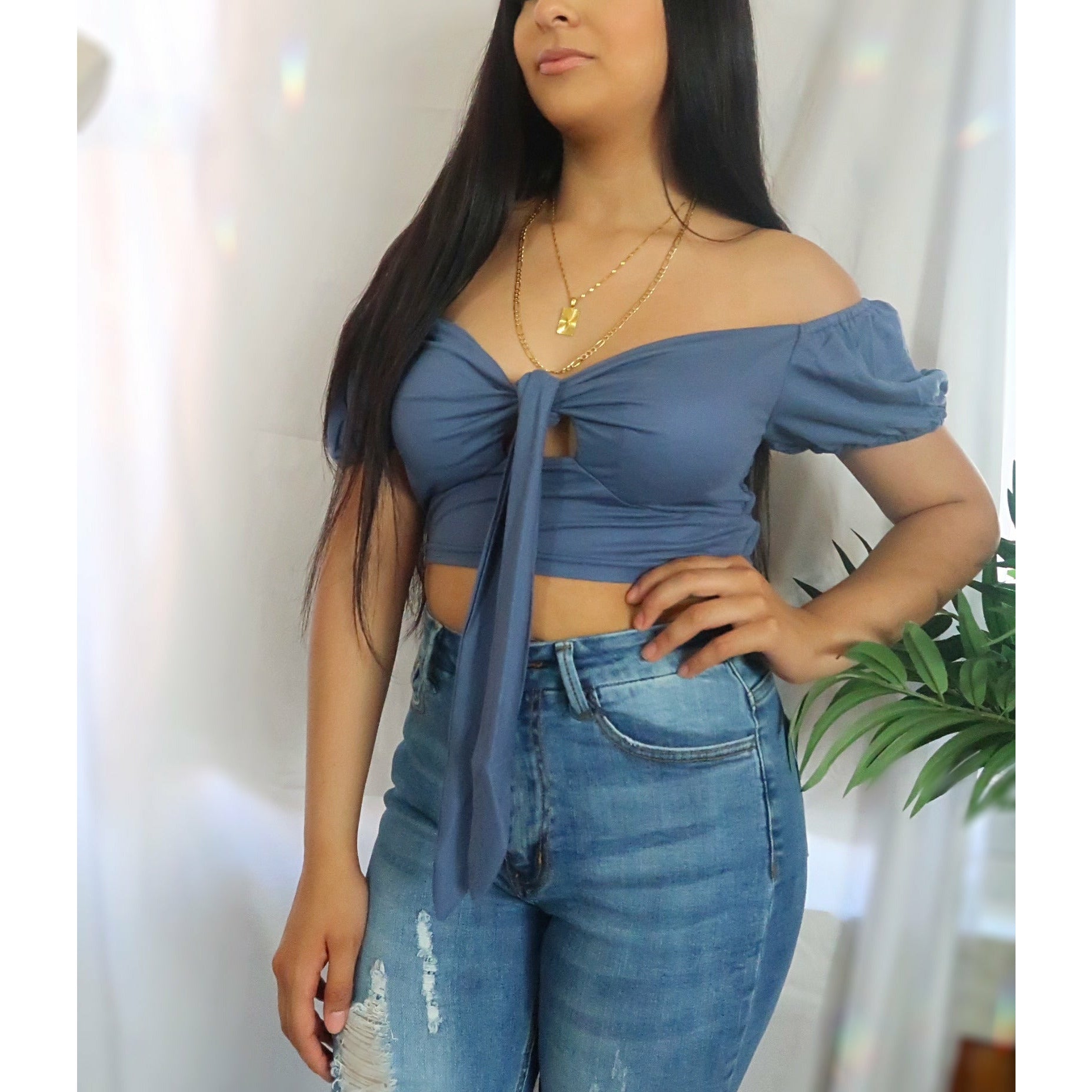 Sweetheart vibesssss! This Ribbon tie detailing gives it the perfect umph. It features a smoked detail allowing all day comfort. Features an elastic bank and short sleeve for balloon sleeve shape.