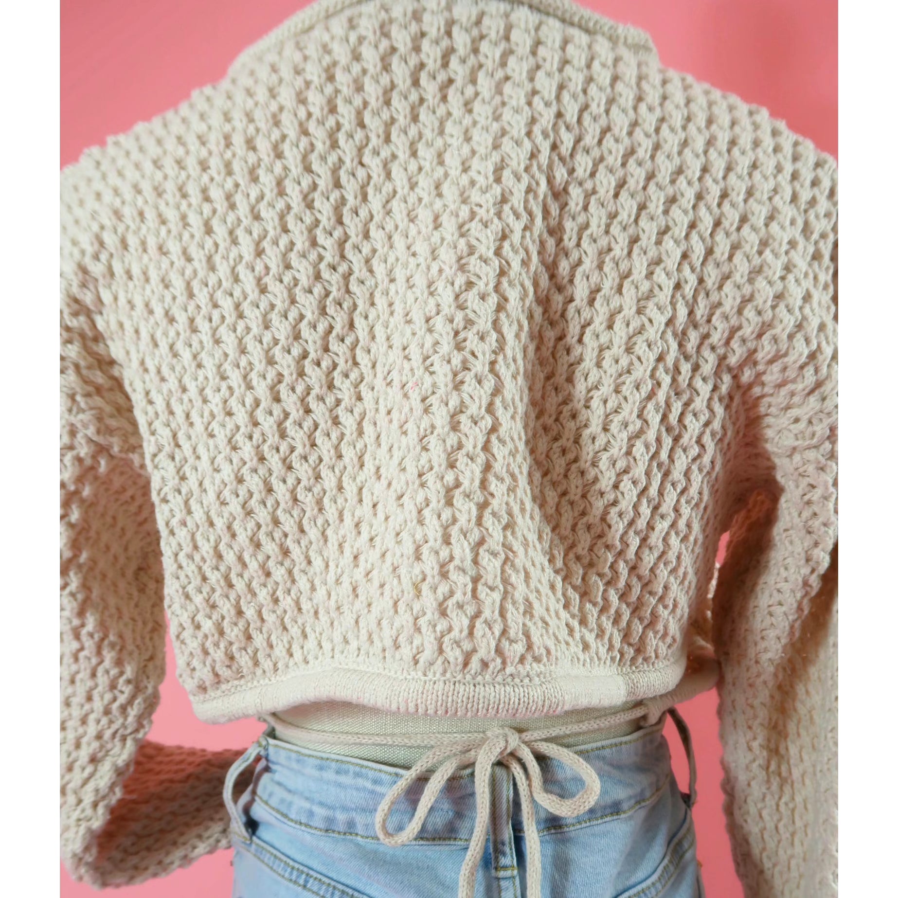 Perfect spring to summer transition sweater! Featuring a sexy open back look and drawstrings for an added detail and gives the ability to be adjusted.