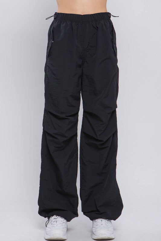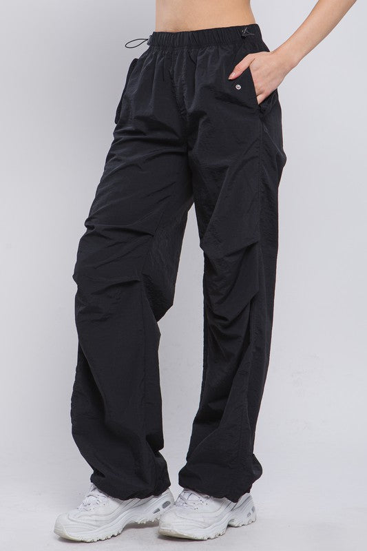 Hottest trending item! Comfy loose parachute pants. Features a jogger fit with drawstring hem details