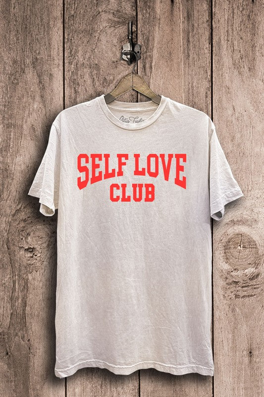 “Self Love Tee” features a mineral wash and a short sleeve fit. Perfectly loose in all the right places. Has an oversized fit