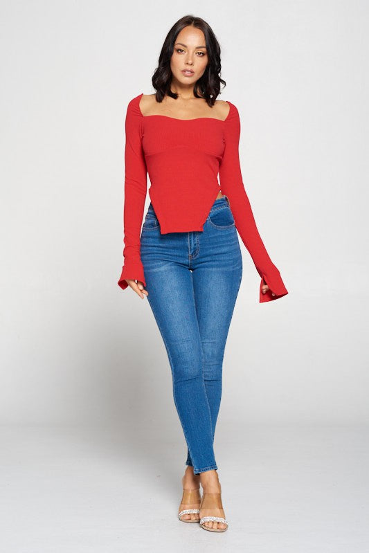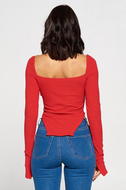 Stay cool and fashionable during this tailgate season with this Red Square Neck Hi-Low top. The perfect blend of comfort and style, this top features a square neckline and a hi-low detail on the sides that's perfect for showing off your Husker pride. Get ready for game day in this must-have top!