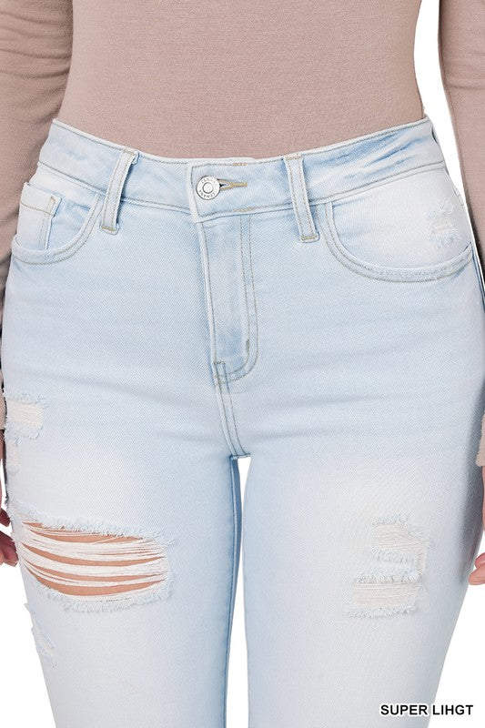 These skinny jeans are to die for, predicting to be our fall favorite. These destroyed light wash skinny jeans feature a comfy stretch. It’s destroyed wash will complete any outfit.
